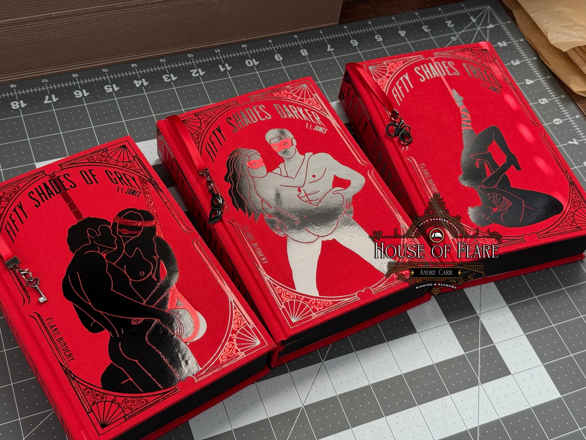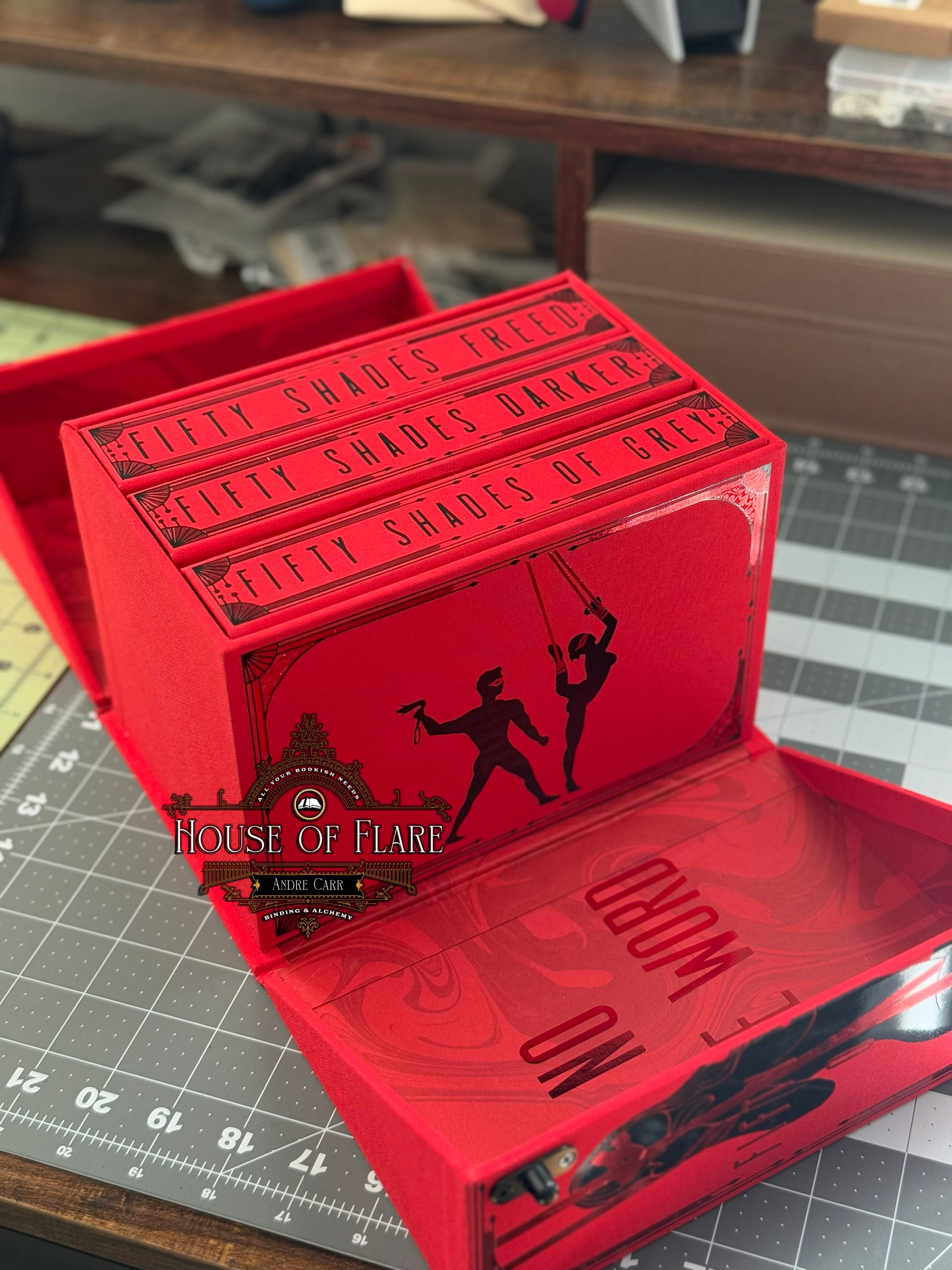 Indulge in the ultimate collector’s edition of the Fifty Shades of Grey trilogy with this No Safe Word Edition deluxe set. Bound in rich red book cloth with striking red and black foils, each volume features custom sprayed edges that echo the seductive and forbidden themes of the story. The three novels are housed in a custom clamshell slipcase, designed to mirror the same bold, provocative aesthetic — a perfect statement piece for your shelves. This set is for the true collector who desires not only the story, but an unforgettable presentation.