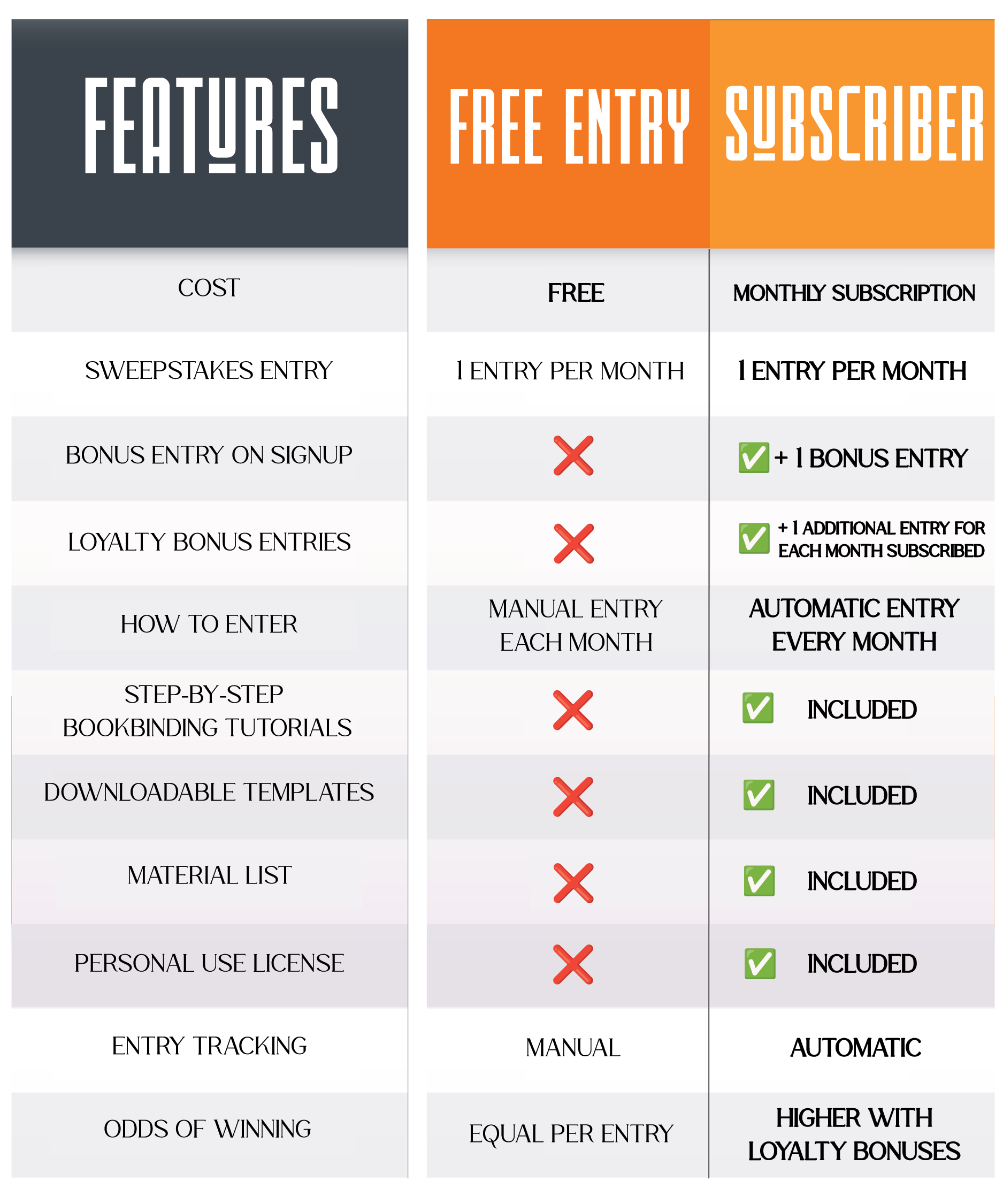 Bonus Sweepstakes Entry Immediately upon subscription. Followed by incremental entries during the lifetime of your subscription!