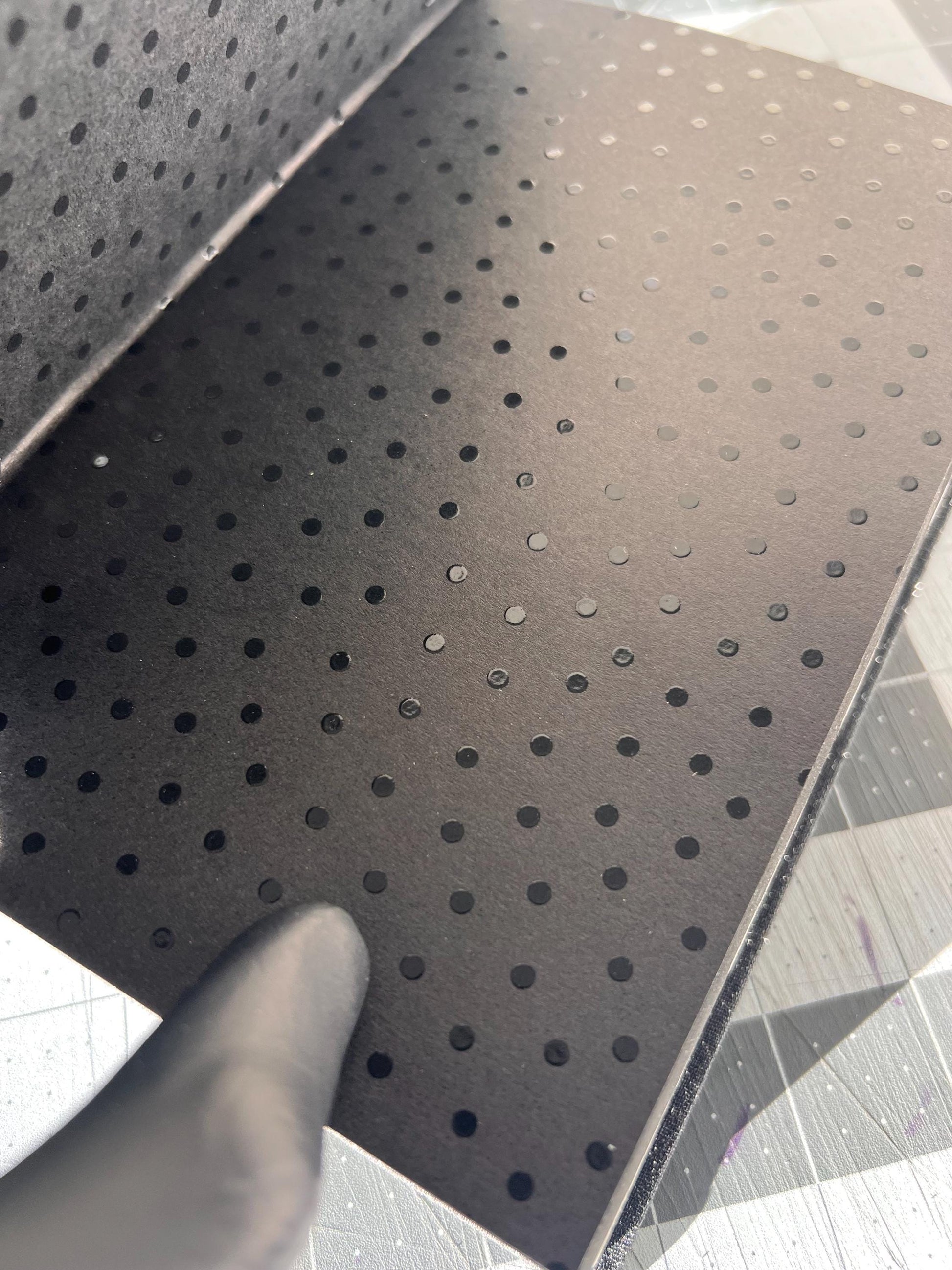 • Custom Sprayed Edges: A beautiful, custom sprayed edge in black, featuring delicate speckles of white that mimic distant stars in the night sky.